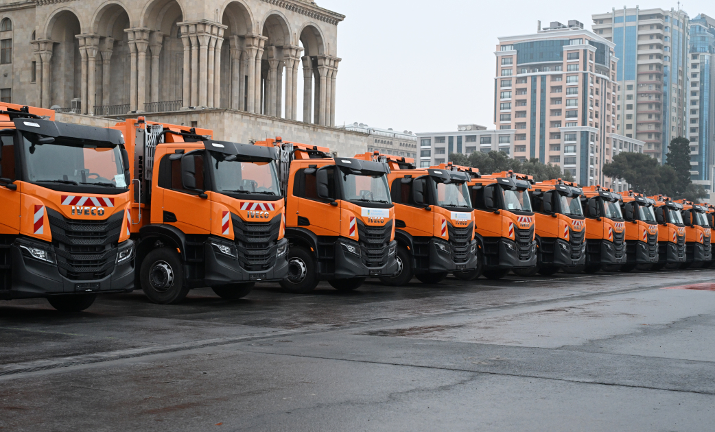 Bildirilib ki, burada “IVECO” və “Dongfeng” şirkətlərinin istehsalı olan müxtəlif kommunal işlər üçün nəzərdə tutulan nəqliyyat vasitələri və texnikalar var. Nəqliyyat vasitələrinin əksəriyyəti tam elektrikli olmaqla, ekoloji cəhətdən ətraf mühitə ziyan vurmadan çalışır.
