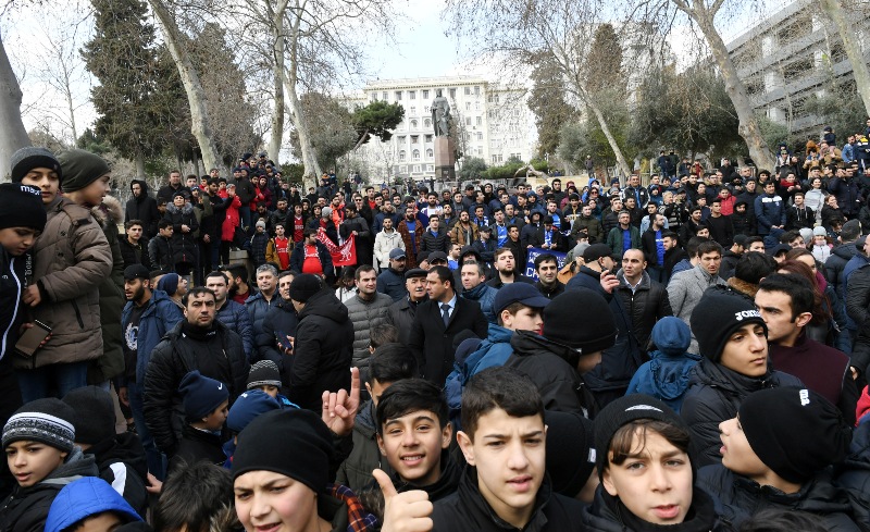 Sonra Prezident İlham Əliyev oyunu izləyən gənc azarkeşlərlə görüşdü, xatirə şəkilləri çəkdirdi.
